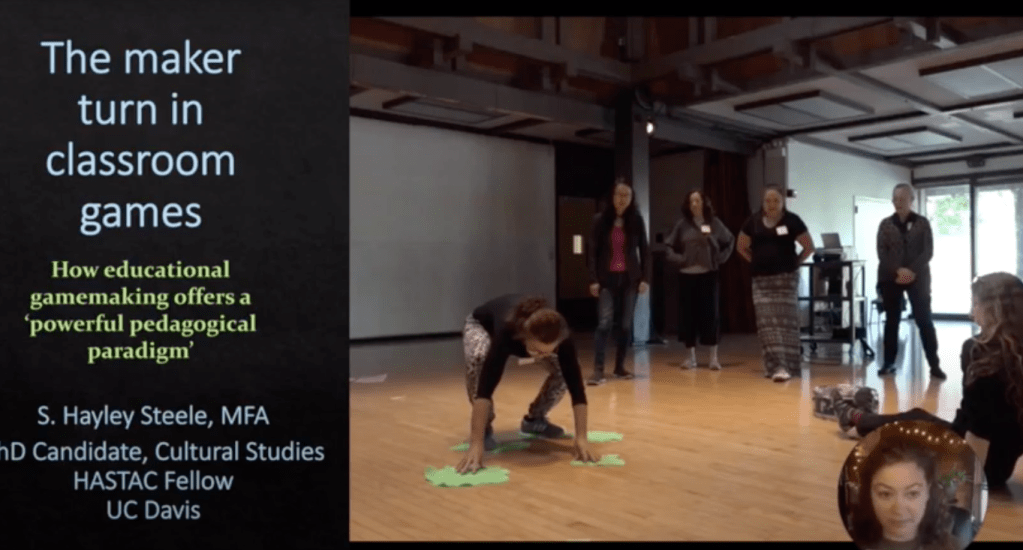 Steele’s work as an educational researcher includes their efforts beginning in 2019 as a project director for UC Davis ModLab, where they have led several teams in developing and implementing college curriculum that uses gamemaking exercises to teach topics across a variety of disciplines, including in STEM, the social sciences, and the humanities. Steele calls this approach “Gamemaking in Education” or GME. In 2023, their article discussing this approach was published as “The Maker Turn in Classroom Games: An Articulation of Gamemaking in Education (GME)” in The Proceedings of GENeration Analog: The Tabletop Games and Education Conference 2021 (Carnegie Mellon University’s ETC Press, 2023). Video of a 2021 presentation that discusses some of the ideas explored in the article can be viewed here.